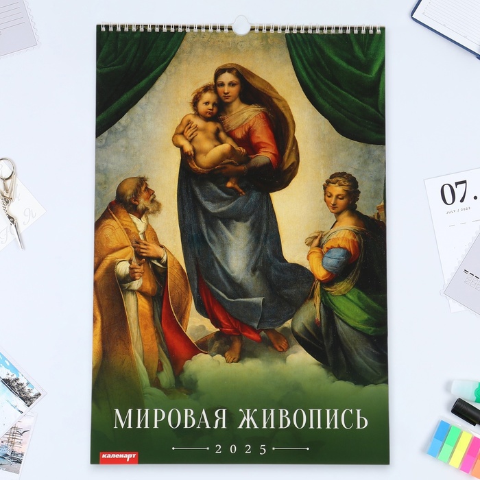 Календарь перекидной на ригеле А3 "Мировая живопись" 2025, 32 х 48 см