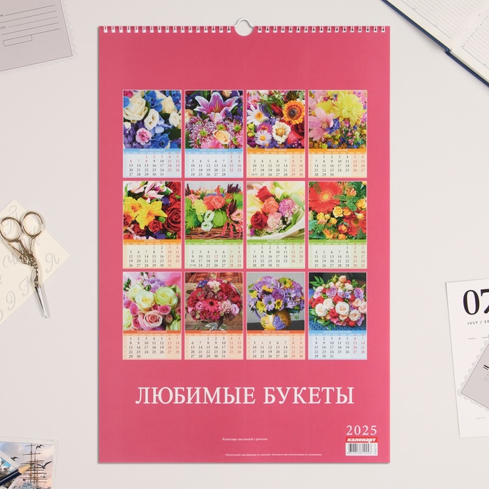 Календарь перекидной на ригеле А3 "Любимые букеты " 2025, 32 х 48 см