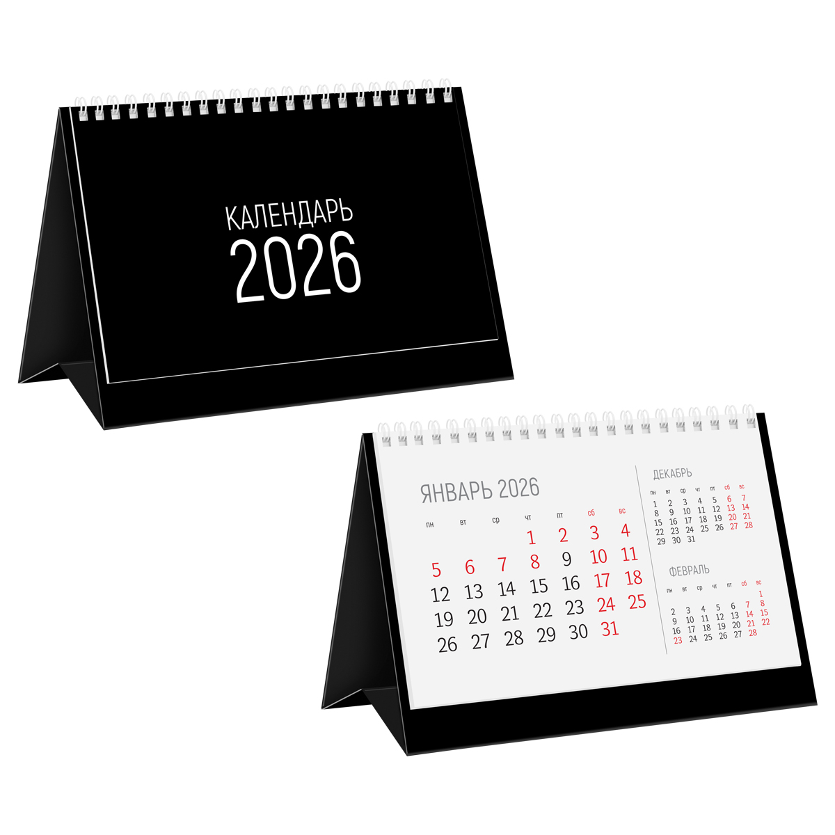 Календарь-домик настольный, твердая подложка, 180*110 мм BG "Black", на гребне, 2026г.