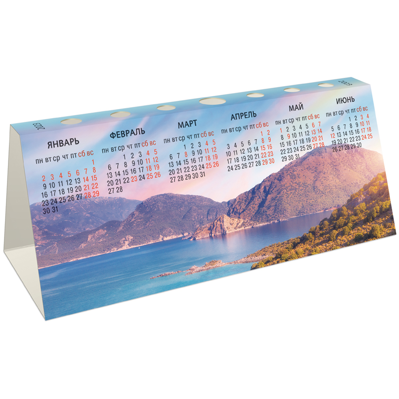 Календарь-домик настольный OfficeSpace «Путешествия» на 2023 год – отличный помощник на рабочем столе. Размер горизонтального календаря – 210*85 мм. Календарь изготовлен из картона плотностью 300 г/м2 с полноцветной цветностью. У календаря есть фигурная высечка, чтобы использовать его в качестве подставки под карандаши и ручки.