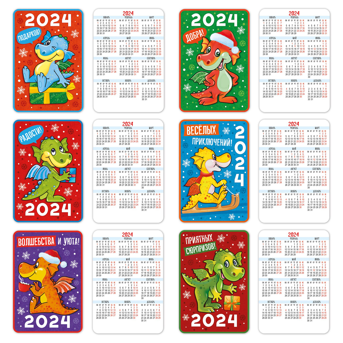 Календарь карманный на 2024г. Размер - 62х91 мм, скругленные уголки, глянцевая ламинация. Небольшие размеры карманного календаря позволяют всегда иметь его под рукой. Его можно использовать как закладку или положить в кошелёк. Ламинация продлевает срок службы изделия, а скругленные уголки защищают от заломов.