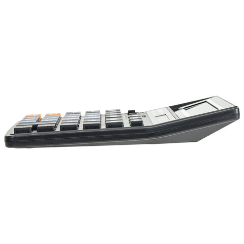 Большой двенадцатиразрядный дисплей отображает большие значения с высокой точностью округления. Двойное питание позволяет калькулятору работать длительное время, а клавиша выключения OFF и функция автоматического отключения (через 8-10 минут бездействия) позволяют максимально продлить срок его службы без замены батареи.