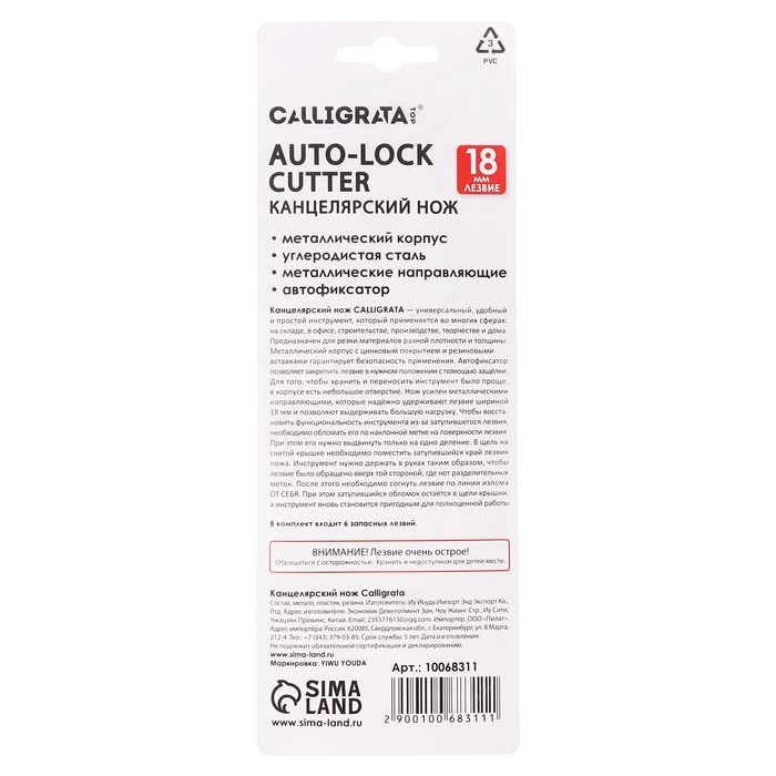 Нож канцелярский 18мм, металлический, Zinc-alloy, TOP