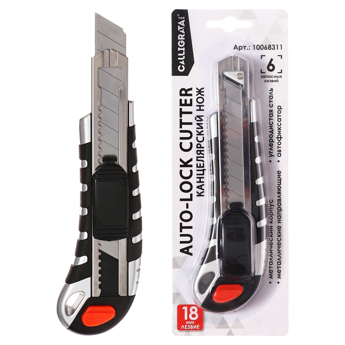 Нож канцелярский 18 мм, пластиковый, автофиксатор, резиновые вставки, TOP