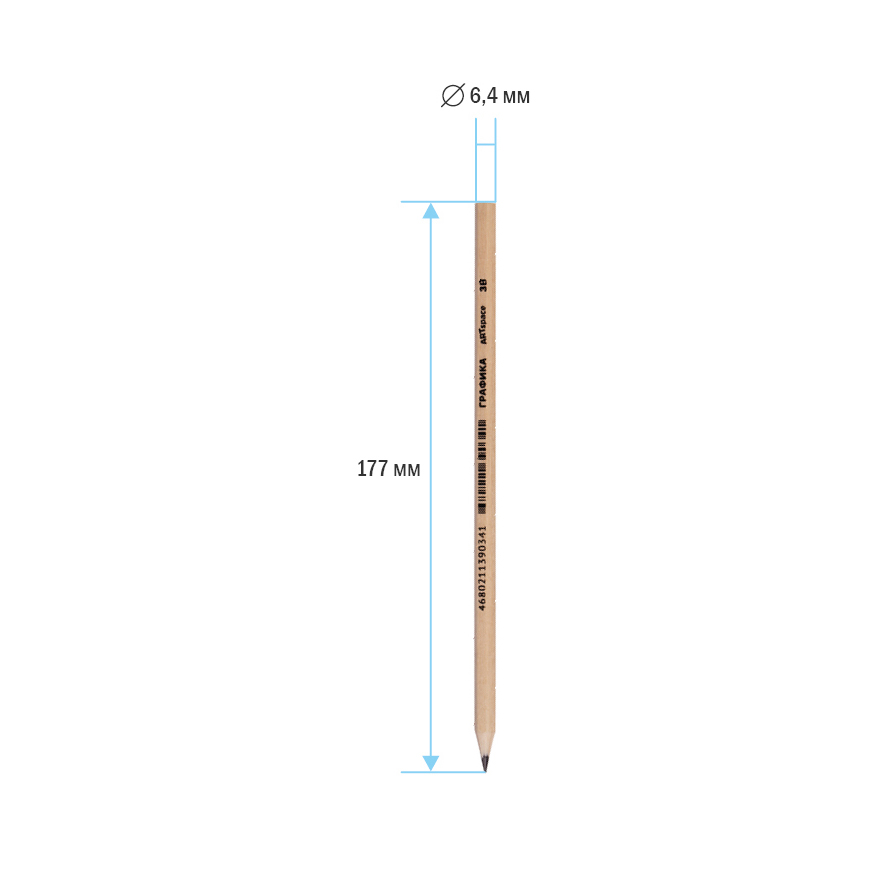 Чернографитный заточенный карандаш из натурального дерева. Отлично подходит для выполнения чертежных, технических, графических и художественных работ. Твердость 3B (3М), шестигранная форма корпуса цвета натурального дерева. Упаковка в картонную коробку с европодвесом, есть штрих-код на корпусе.