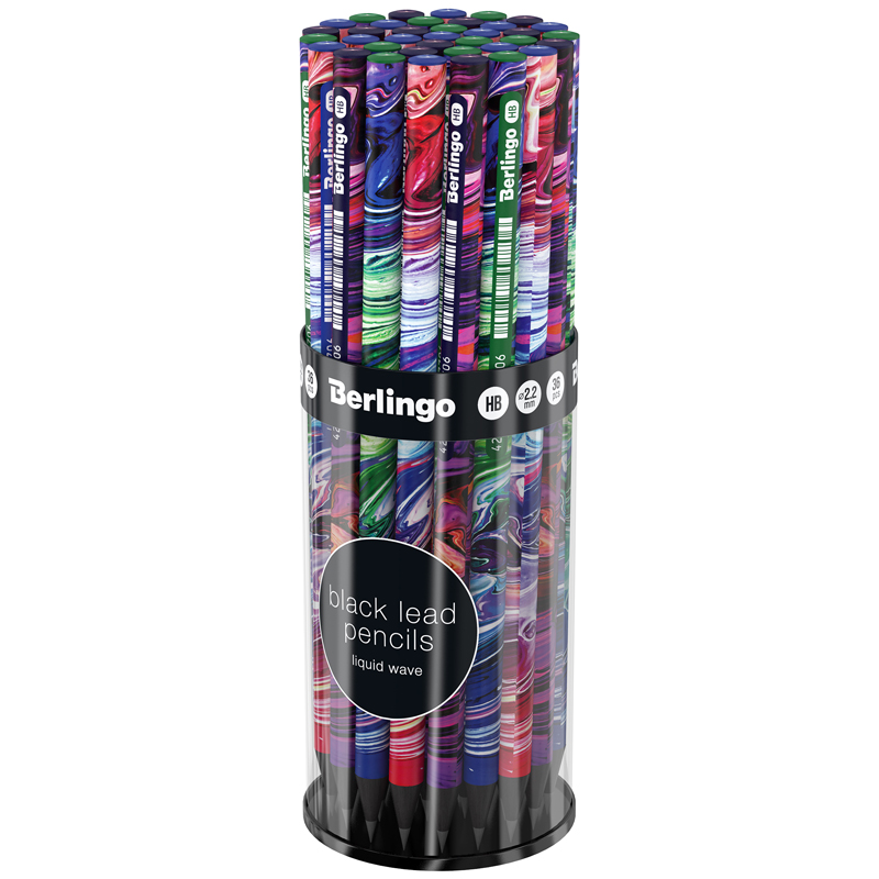 Чернографитный карандаш Berlingo Liquid Wave из черного дерева с заточкой. Карандаш закруглен, срез обработан. Яркий дизайн коллекционной серии Berlingo Liquid Wave. Дизайны корпуса представлены в 3-х вариантах. Матовое покрытие корпуса добавляет особый комфорт при работе. Карандаш создан из специально обработанной древесины для идеальной заточки. Простой карандаш подходит для черчения и рисования. Он не ломается при падении и безопасен для детей. Упаковка − прозрачная разъемная ПВХ-туба с возможностью использования в качестве подставки. Индивидуальный ШК на корпусе. <br/>• Диаметр грифеля: 2,2 мм;<br/>• Твердость: HB;<br/>• Заточенный грифель: да;<br/>• Форма корпуса: круглая;<br/>• Цвет дерева: черный;<br/>• Цвет корпуса: микс из 3-х дизайнов;<br/>• Количество штук в упаковке: 36;<br/>• Тип упаковки: прозрачная ПВХ-туба