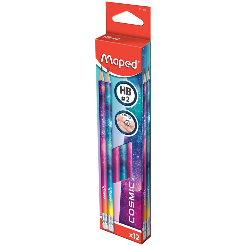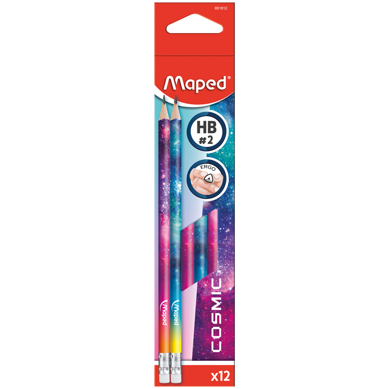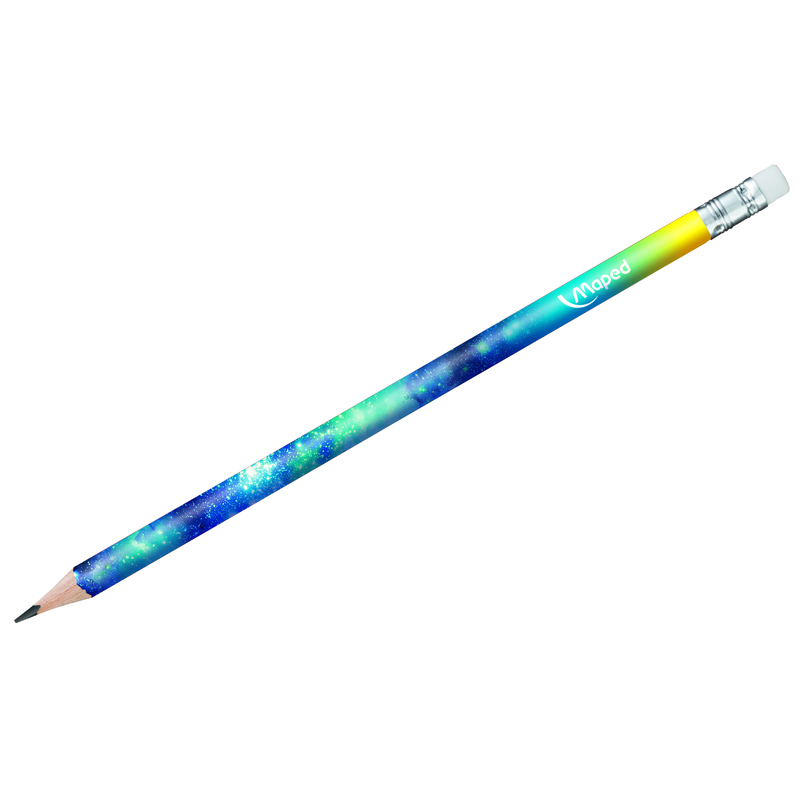 Карандаш чернографитный COSMIC TEENS с ластиком. Выполнен из пластика и имеет трехгранный корпус. Твердость HB. Космический дизайн корпуса карандаша бессомненно привлекает внимание, ассорти.