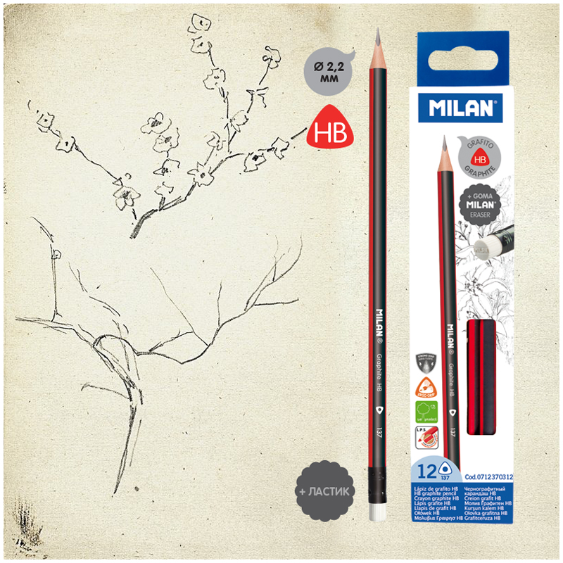 HB графитовые карандаши с ластиком. Ø 2,2 мм. Трехгранная форма. Они находятся в середине шкалы твердости графита HB, рекомендуемой для письма и рисования. Грифель обеспечивает равномерный ход и предотвращает разрыв, благодаря Системе защиты грифеля (LPS), которая защищает грифель благодаря полной приклейки к дереву. Дерево происходит от устойчивых плантаций. Предназначен для чертежных и графических работ. Карандаш имеет эргономичный трехгранный корпус, позволяющий удобно располагать его в руке.
