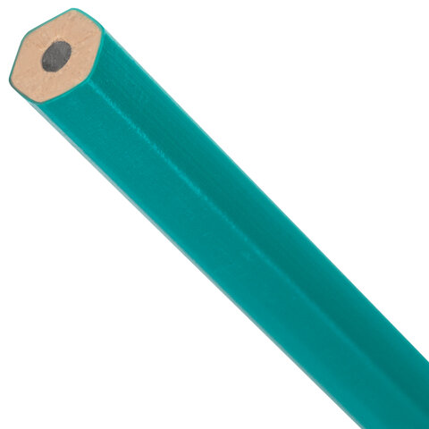 Карандаш изготовлен из прочного пластика. Благодаря шестигранному сечению корпуса карандаш удобен в работе и менее подвержен скатыванию с поверхности стола. Корпус длиной 176 мм легко точится и не крошится, оставляя равномерную стружку. Грифель карандаша обладает средней степенью твердости – HB. Корпус выкрашен в классический зелёный цвет. Поставляется заточенным.