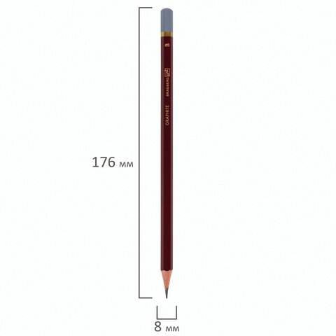 Карандаш легко затачивается, максимально устойчив к повреждениям. Изготовлен из дерева высокого качества. Имеет шестигранное сечение. Карандаш длиной 176 мм обладает степенью твердости – B. Цвет корпуса - бордовый. Диаметр грифеля- 2,4 мм. Поставляется заточенным.