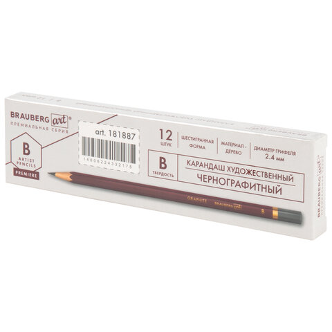 Карандаш чернографитный художественный BRAUBERG ART "PREMIERE" универсален в рисовании и обладает огромными возможностями в передаче света и тени. Подходит для создания легкого наброска, быстрого рисунка или полноценной картины.