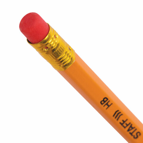 Карандаши изготовлены из прочного пластика. Ластик, расположенный на корпусе, обеспечивает мягкое и чистое стирание. Благодаря шестигранному сечению корпуса карандаши удобны в работе и менее подвержены скатыванию с поверхности стола. Корпус длиной 185 мм легко точится и не крошится, оставляя равномерную стружку. Грифель обладает средней степенью твердости – HB. Корпус выкрашен в классический жёлтый цвет.