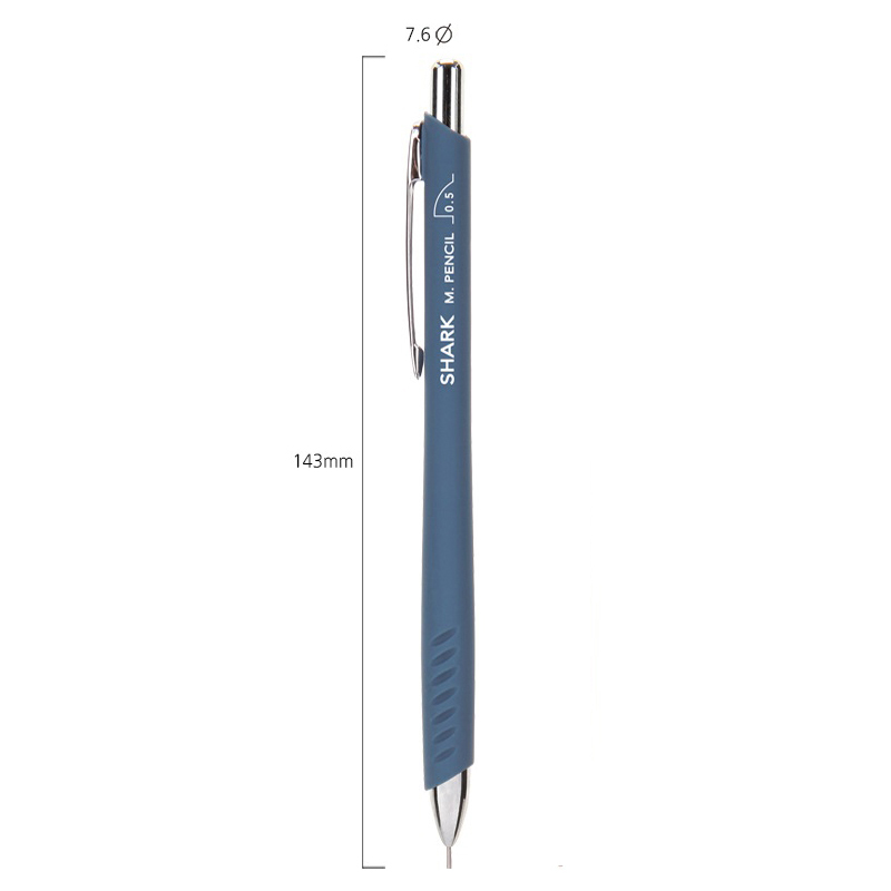 Стильный и элегантный механический карандаш Munhwa серии Shark покоряет утонченной формой и тщательно выверенной эргономикой. Идеально подходит как для черчения, так и для рисования. В комплекте два грифеля диаметром 0, 5 мм. Прочная жесткая направляющая обеспечивает точный результат при работе с линейками или трафаретами. Надежный механизм дозированно подает грифель. На торцевой части карандаша расположен выдвижной ластик, который мягко стирает и не оставляет разводов. Корпус карандаша цвета морской волны круглый, в зоне захвата немного утолщен и имеет противоскользящие углубления для комфортной работы. Диаметр – 10 мм, а длина составляет 144 мм. Нежнейшее покрытие soft-touch обеспечивает приятные тактильные ощущения при использовании карандаша. Карандаш имеет хромированный металлический клип и детали в области ластика и пишущего узла.<br/>• Твёрдость: HB;<br/>• Диаметр грифеля: 0,5 мм;<br/>• Материал корпуса: пластик;<br/>• Форма корпуса: круглая;<br/>• Цвет корпуса: морская волна.