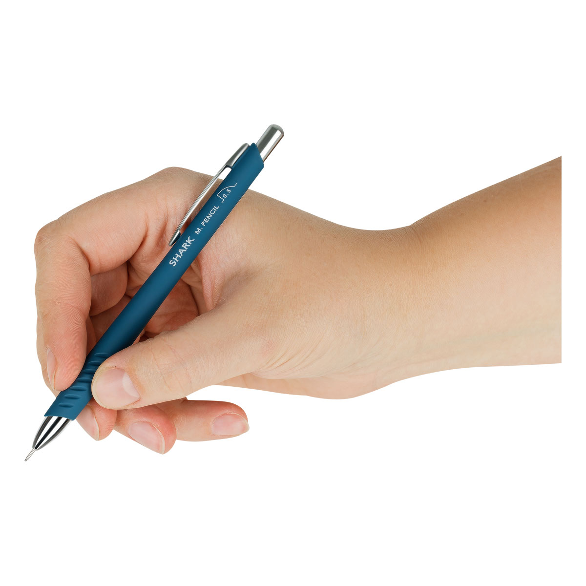 Стильный и элегантный механический карандаш Munhwa серии Shark покоряет утонченной формой и тщательно выверенной эргономикой. Идеально подходит как для черчения, так и для рисования. В комплекте два грифеля диаметром 0, 5 мм. Прочная жесткая направляющая обеспечивает точный результат при работе с линейками или трафаретами. Надежный механизм дозированно подает грифель. На торцевой части карандаша расположен выдвижной ластик, который мягко стирает и не оставляет разводов. Корпус карандаша цвета морской волны круглый, в зоне захвата немного утолщен и имеет противоскользящие углубления для комфортной работы. Диаметр – 10 мм, а длина составляет 144 мм. Нежнейшее покрытие soft-touch обеспечивает приятные тактильные ощущения при использовании карандаша. Карандаш имеет хромированный металлический клип и детали в области ластика и пишущего узла.