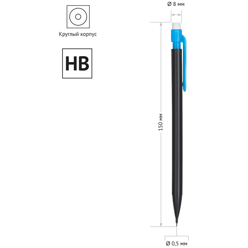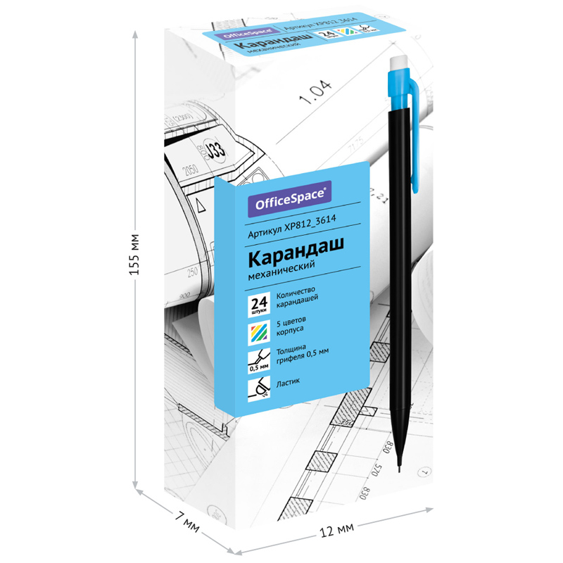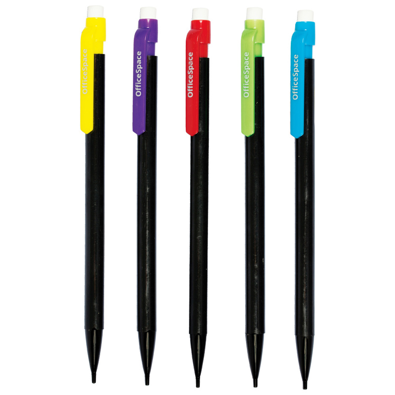 Механический карандаш OfficeSpace в пластиковом прозрачном корпусе с диаметром грифеля 0,5 мм и твердостью НВ. Длина карандаша 15 см, диаметр 8 мм, форма корпуса – круглая. Карандаш снабжён р встроенным ластиком, при нажатии на который происходит подача грифеля. Упакованы в коробку по 24 штуки, 5 ярких цветов корпуса ассорти. Грифели в комплект не входят.