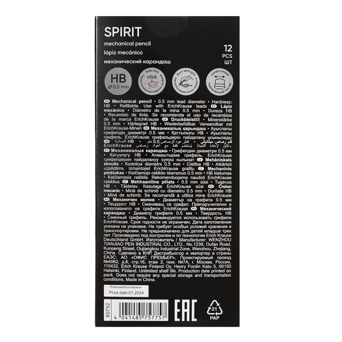 Карандаш механический 0,5 мм ErichKrause "Caribbean Sunset" НВ, с ластиком, трехгранный корпус Soft-touch, тубус, микс