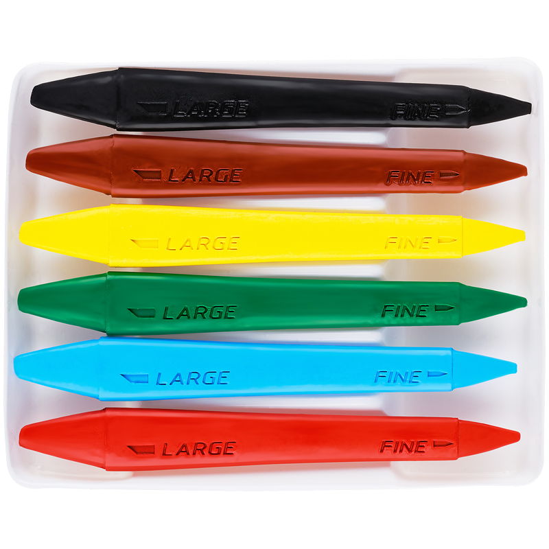 Набор из 6 пластиковых двусторонних мелков «Мульти-Пульти» серии «Приключения Енота» разработан специально для маленьких детей и подходит для рисования и воплощения смелых творческих идей. Длина пластикового мелка составляет 90 мм, а диаметр корпуса — 7-10 мм. В наборе 6 ярких цветов: жёлтый, зелёный, голубой, красный, чёрный, коричневый. Двусторонние мелки имеют трёхгранную форму: с помощью одного мелка можно рисовать тонкие и толстые линии. Они легко ложатся на бумагу, не крошатся и не пачкают руки.