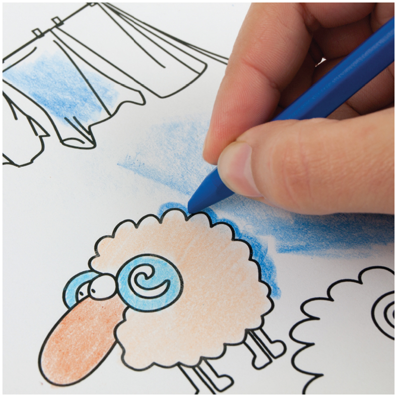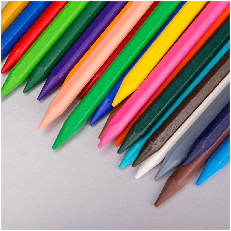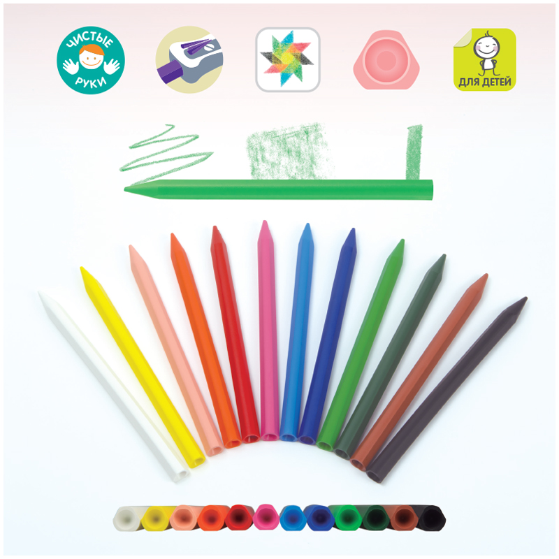 Восковые мелки для детского творчества. Упаковка, снабженная европодвесом, привлекает внимание ярким дизайном.