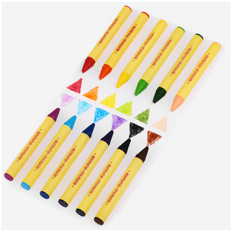 Мелки утолщённой формы на восковой основе легко наносятся на бумагу, картон, дерево и керамику. Подходят для детей старше 3-х лет.