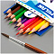 Карандаши цветные, заточенные, для рисования на бумаге. Ударопрочные. Высококачественная древесина легко затачивается, не оставляя заусенцев. Форма карандаша трехгранная, она позволит ребенку легко научиться правильно располагать пальцы, держать карандаш «щепоткой», а не в кулаке. Грифель обеспечивает равномерное нанесение тона и устойчив к поломке благодаря системе защиты грифеля (LPS), которая приклеивает грифель по всей длине карандаша к древесине. Рекомендованы для использования начиная с возраста от 3-х лет. В набор входит 12 цветов. Длина корпуса карандаша 175 мм. Диаметр грифеля 2.9 мм. Поставляются в картонной упаковке с европодвесом, размер 210×90×8 мм.<br/>В набор входит кисть из волоса пони, размер № 6.