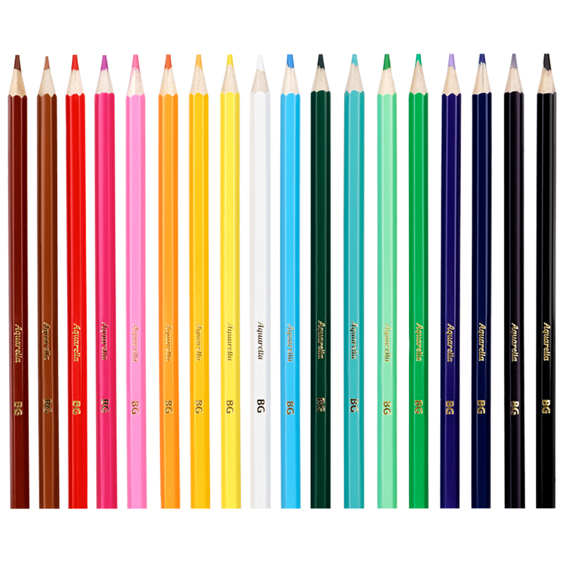 Цветные карандаши BG Aquarella шестигранной формы выполнены из высококачественных пород древесины. В набор входят 18 ярких насыщенных цветов, которые мягко ложатся на бумагу и обладают превосходной смешиваемостью. При размывании водой создается эффект акварели. Устойчив к механическим деформациям и легко затачивается. Улучшенная формула грифеля с диаметром 3 мм. Упаковка в плотную матовую картонную коробку с европодвесом. <br/>• Количество цветов: 18;<br/>• Форма корпуса: шестигранная;<br/>• Заточка грифеля: да;<br/>• Тип упаковки: картонная коробка.