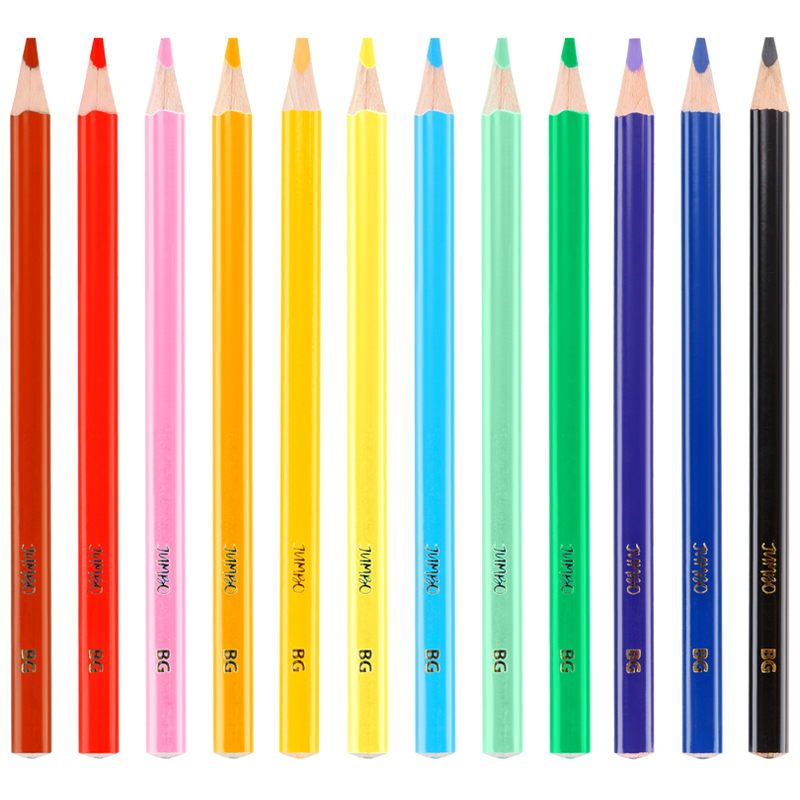 Цветные карандаши BG Jumbo эргономичной трехгранной формы выполнены из высококачественных пород древесины. В набор входят 12 ярких насыщенных цветов, которые мягко ложатся на бумагу и обладают превосходной смешиваемостью. Утолщенная форма грифеля класса А диаметром 5 мм. Устойчив к механическим деформациям и легко затачивается. Упаковка в плотную матовую картонную коробку с европодвесом. Точилка в комплекте.<br/>• Количество цветов: 12;<br/>• Форма корпуса: трёхгранная;<br/>• Заточка грифеля: да;<br/>• Тип упаковки: картонная коробка.