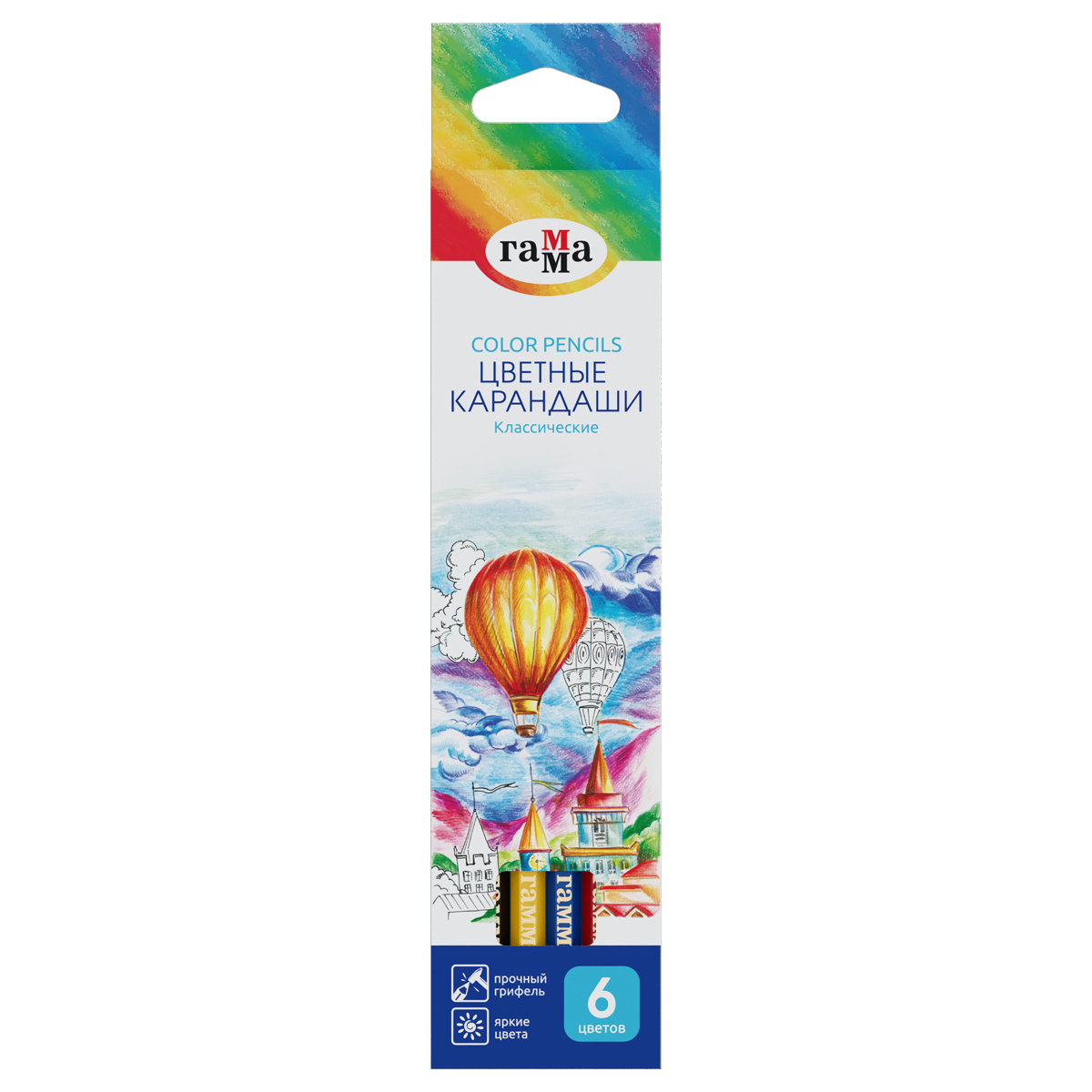 Карандаши цветные Гамма "Классические", 06цв., заточен., картон. упак., европодвес