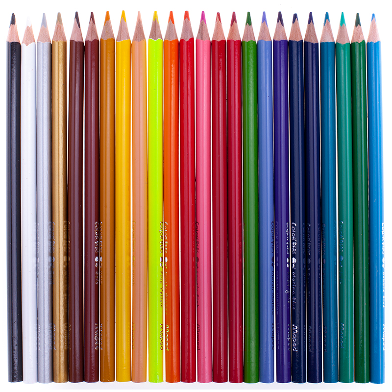 Карандаши цветные COLOR'PEPS треугольный формы. Эргономичный корпус позволяет удобно располагать карандаш в руке, и предотвращает его скатывание со стола. Изготовлены из древесины американской липы. Грифель ударопрочный, не ломается при падении и при этом отлично точится. Красочная картонная упаковка, 24 цвета.
