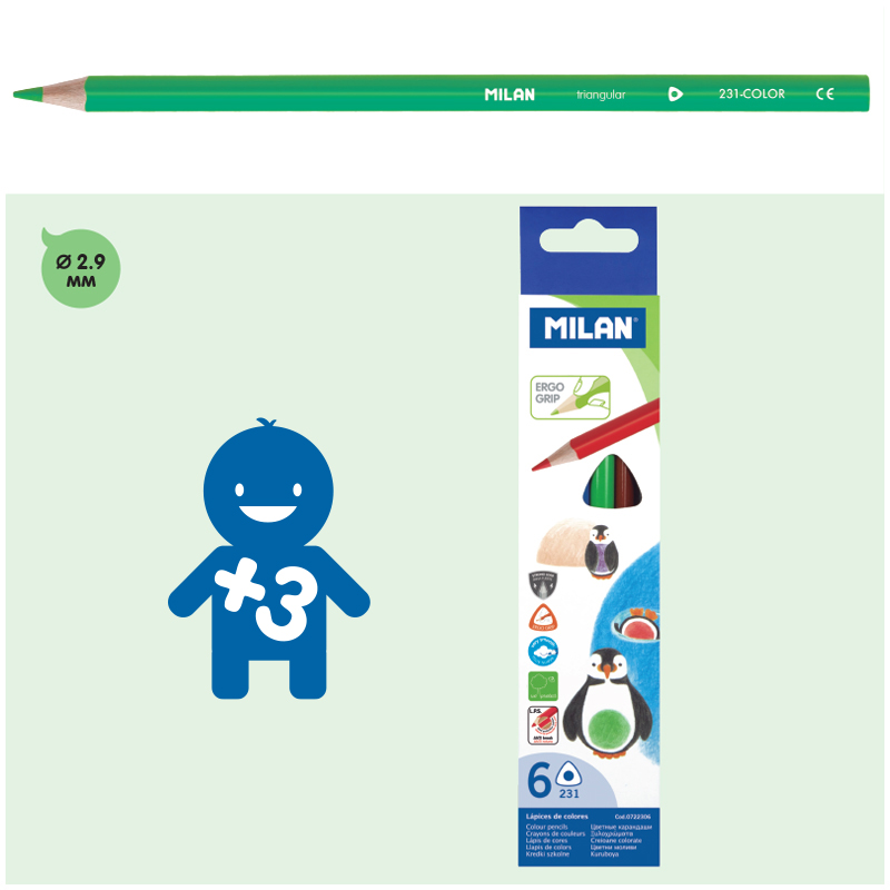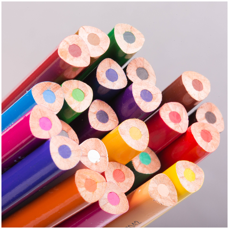 Набор цветных карандашей трехгранной формы, с ярким мягким грифелем.