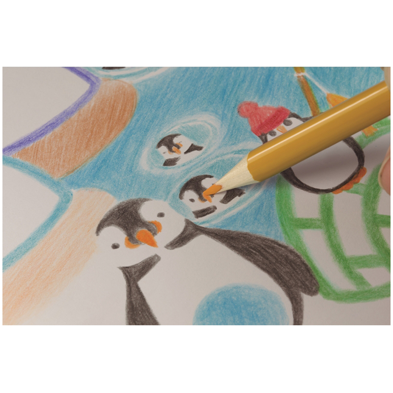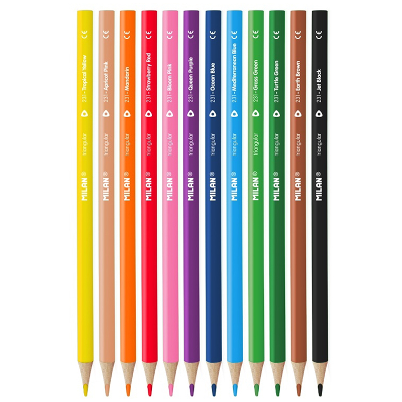 Карандаши цветные, заточенные, для рисования на бумаге. Ударопрочные. Высококачественная древесина легко затачивается, не оставляя заусенцев. Форма карандаша трехгранная, она позволит малышу легко научиться правильно располагать пальцы, держать карандаш «щепоткой», а не в кулаке. Грифель обеспечивает равномерное нанесение тона и устойчив к поломке благодаря системе защиты грифеля (LPS), которая приклеивает грифель по всей длине карандаша к древесине. Рекомендованы для использования начиная с возраста от 3-х лет. В набор входит 12 цветов. Длина корпуса карандаша 174 мм. Диаметр грифеля 2.9 мм. Поставляются в картонной упаковке с европодвесом, размер 85×8х210 мм.