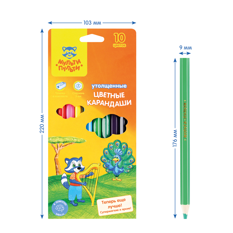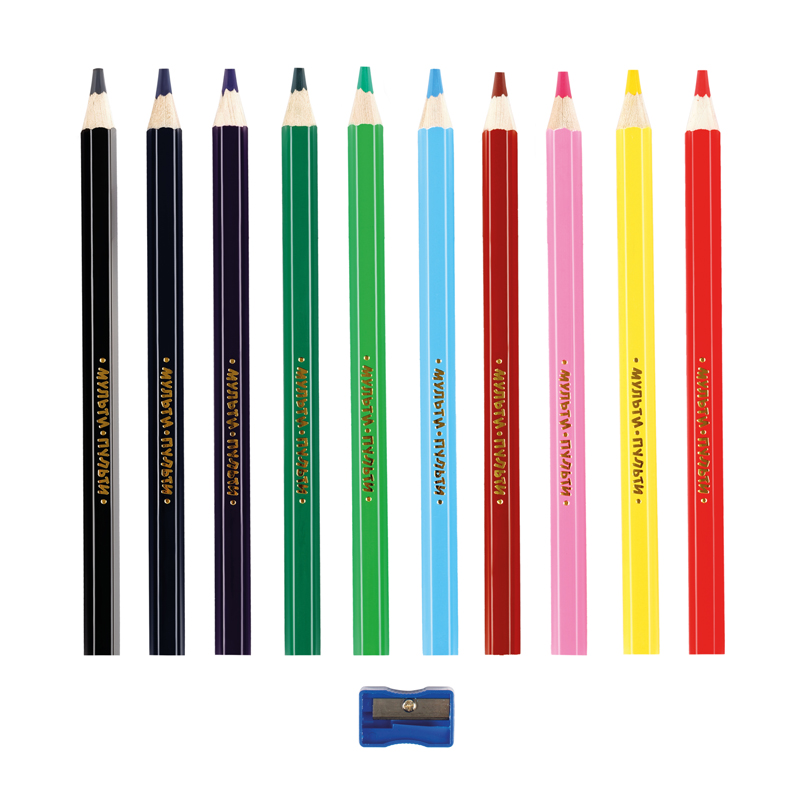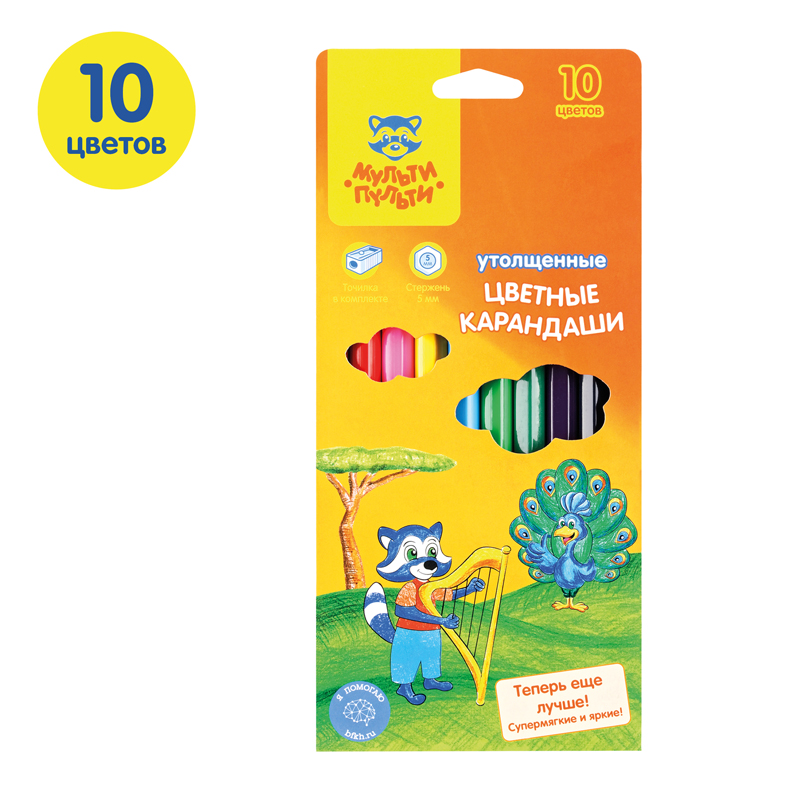 Цветные карандаши предназначены для рисования на бумаге. Утолщенный корпус карандаша хорошо подходит для детей, чья моторика еще не достаточно развита. Цвета яркие и насыщенные. В набор входит удобная точилка для карандашей. Для детей старше 3-х лет.