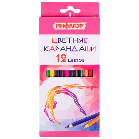 Карандаши цветные ПИФАГОР для девочек "БЫСТРЕЕ! ВЫШЕ! СИЛЬНЕЕ!", 12 цветов, классические, 181811