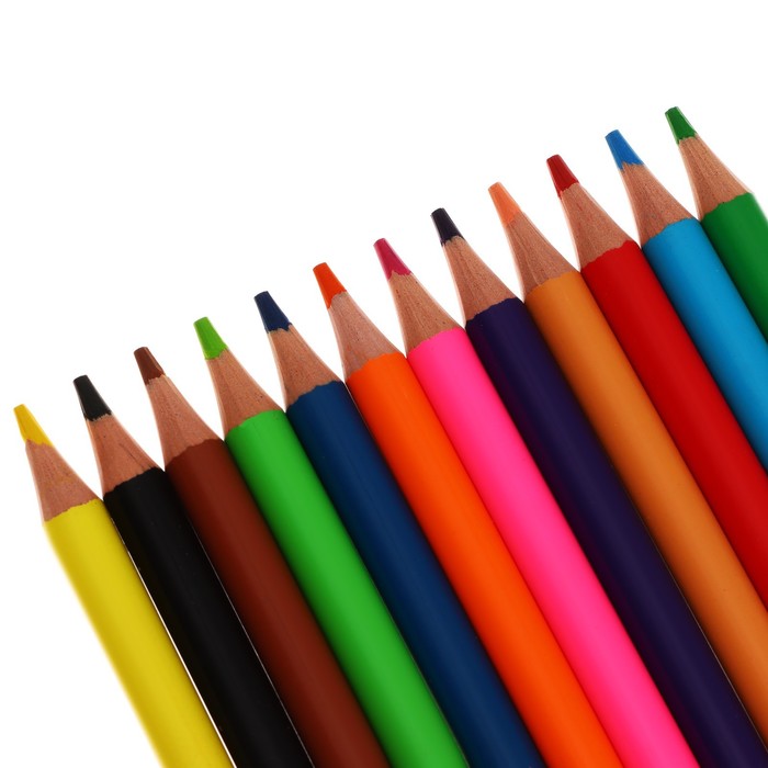 Карандаши 12 цветов в картонной коробке, шестигранные, деревянные,Цветы на чёрном МИКС