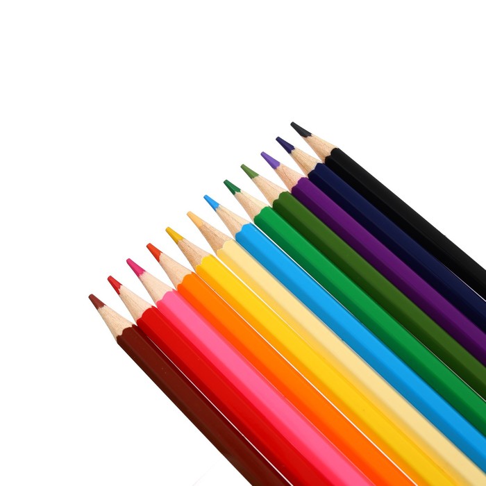 Карандаши 12 цветов в картонной коробке, шестигранные, деревянные,Цветы на чёрном МИКС