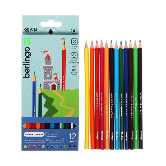 Карандаши 24 цвета в картонной коробке, треугольные, деревянные, Пастель МИКС
