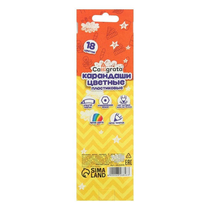 Карандаши 18 цветов в картонной коробке, шестигранные, деревянные,Цветы на чёрном МИКС