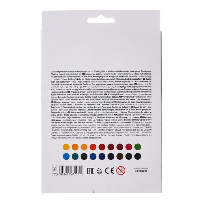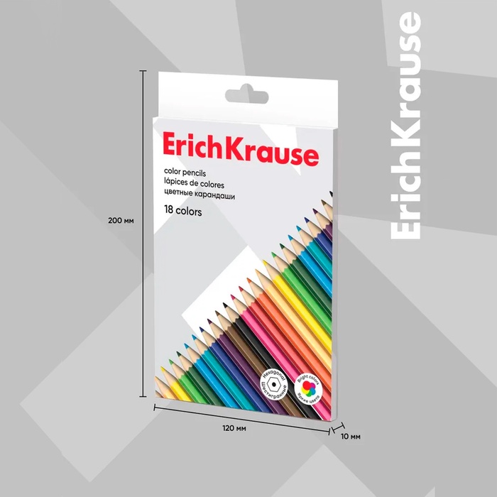 Карандаши 18 цветов в картонной коробке, треугольные, деревянные, Пастель МИКС