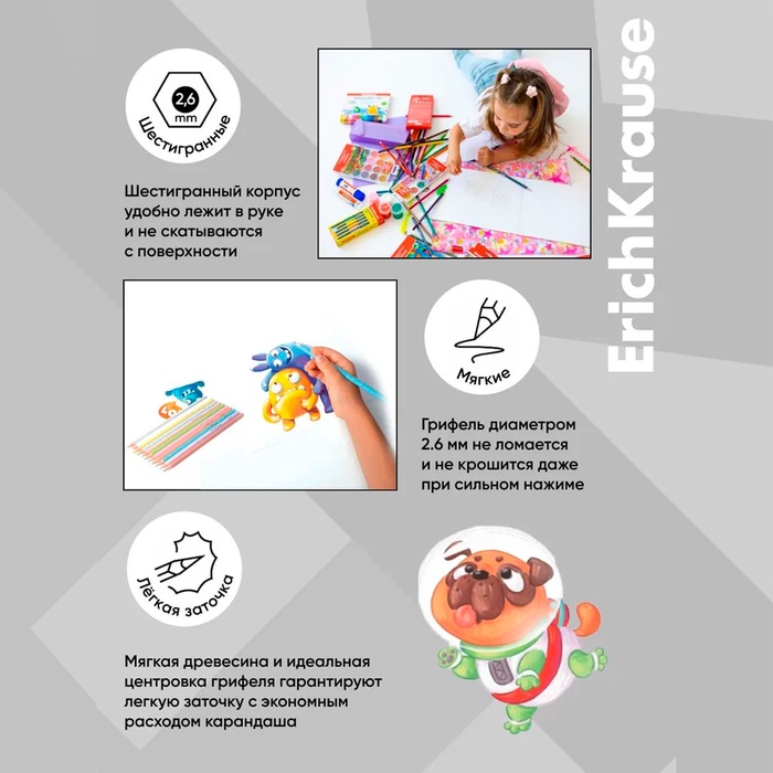 Карандаши 24 цвета в картонной коробке, треугольные, деревянные, Пастель МИКС