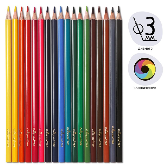 Карандаши 18 цветов в картонной коробке, треугольные, деревянные, Пастель МИКС