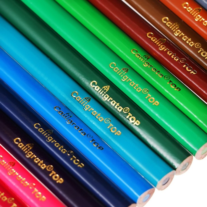 Карандаши 24 цвета, в металл пенале, треугольные, деревянные, Пейзаж МИКС