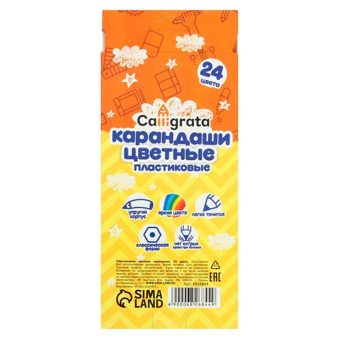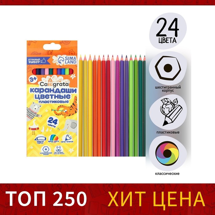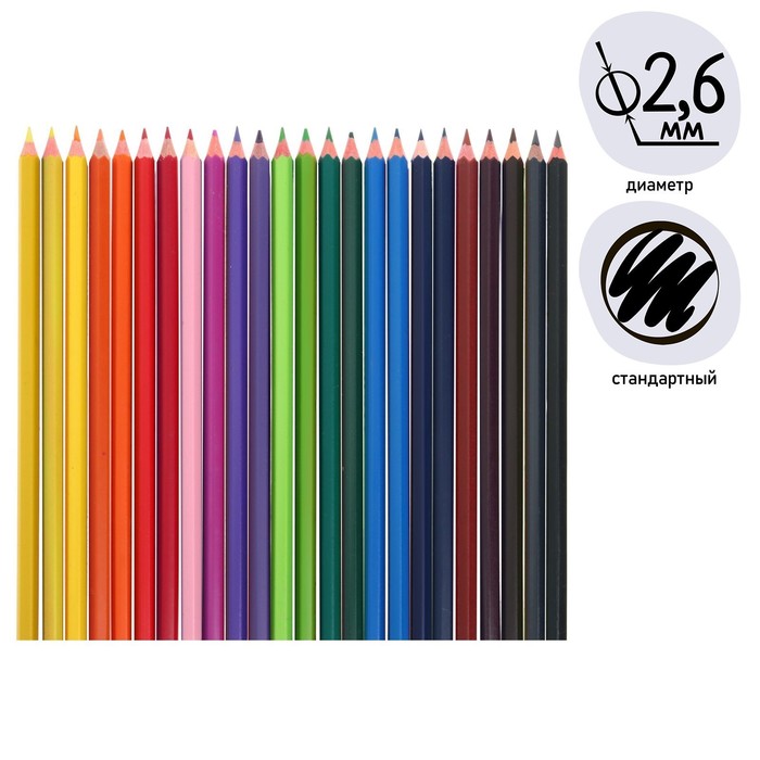 Карандаши 24 цвета в картонной коробке, треугольные, деревянные, Пастель МИКС
