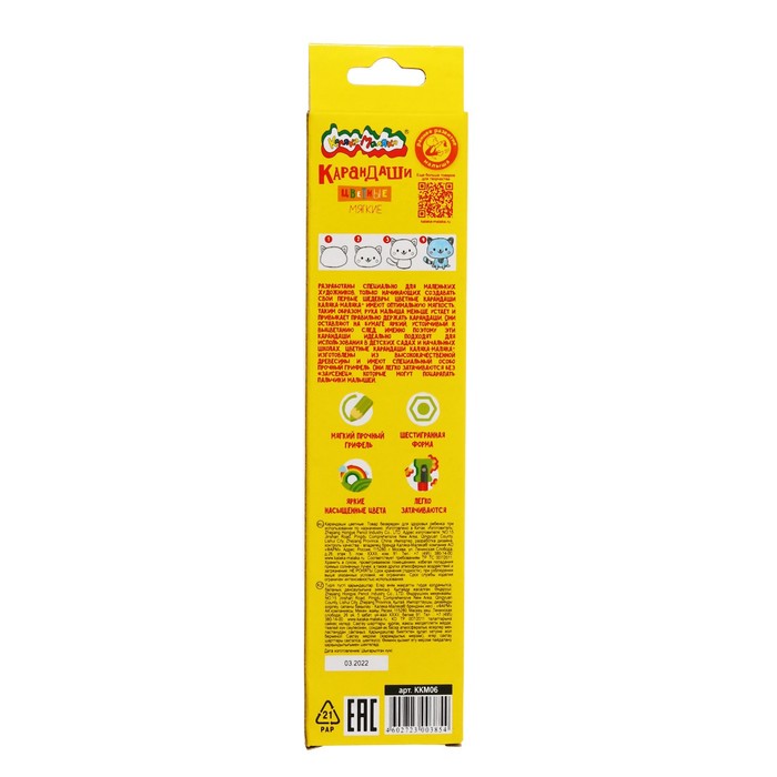 Карандаши 18 цветов в картонной коробке, треугольные, деревянные, Пастель МИКС