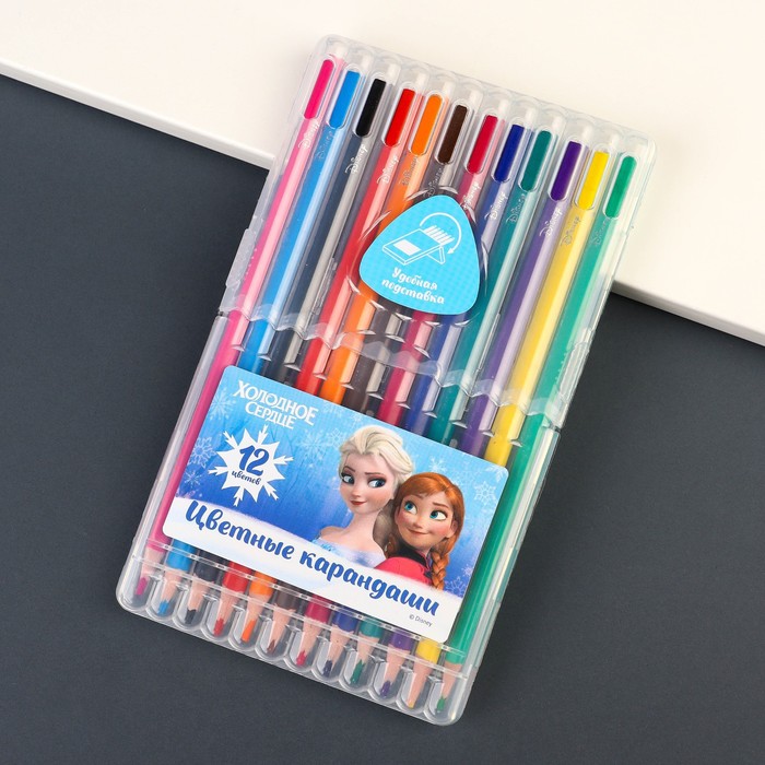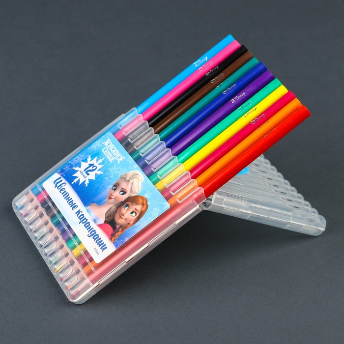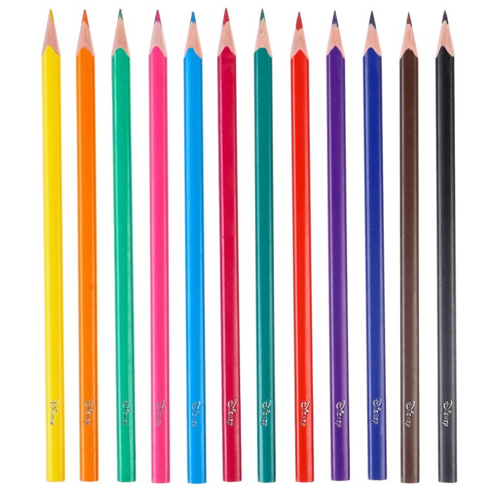 Карандаши 12 цветов в картонной коробке, шестигранные, деревянные,Цветы на чёрном МИКС