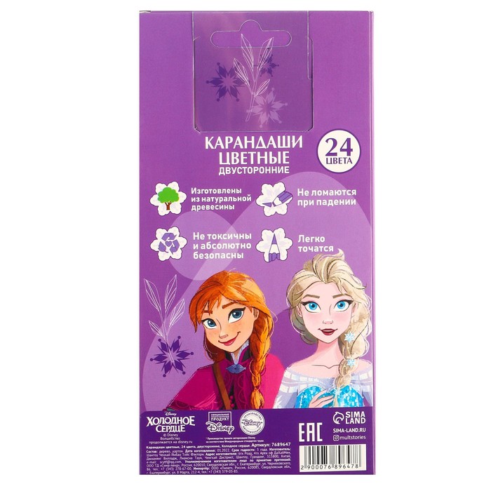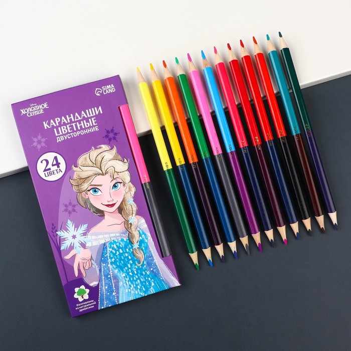 Карандаши 24 цвета в картонной коробке, шестигранные, деревянные,Цветы на чёрном МИКС