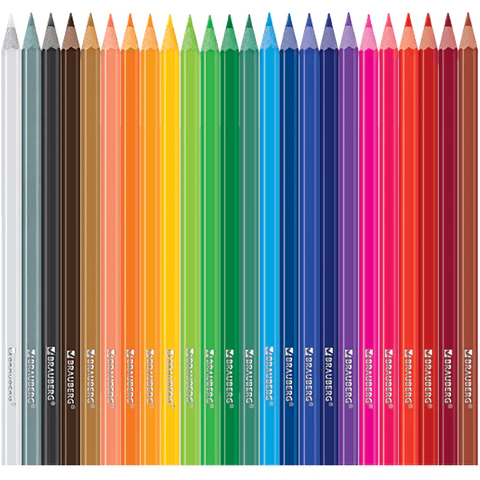 Карандаши цветные BRAUBERG, 24 цвета, цветной корпус, ПВХ бокс, шестигранные, 182068