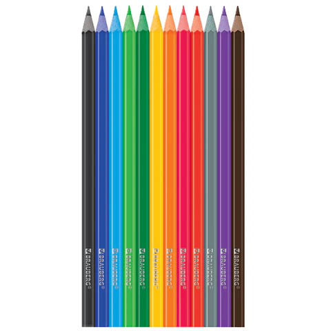 Карандаши цветные BRAUBERG, 12 цветов, цветной корпус, упаковка ПВХ бокс, шестигранные, 182067