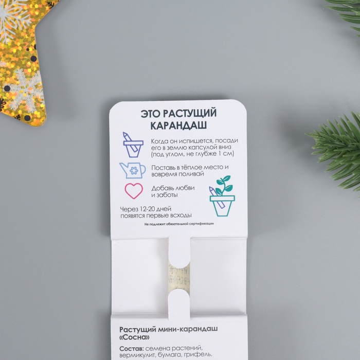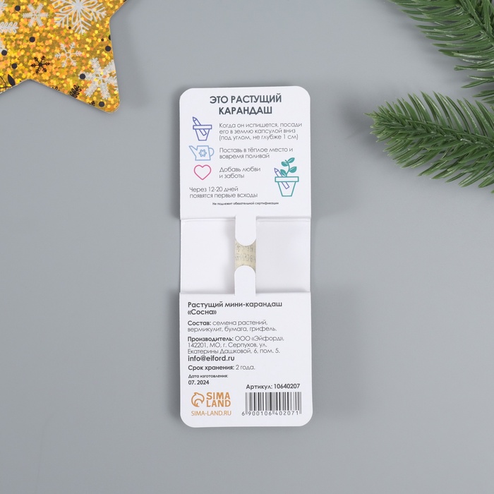 Растущий карандаш подарочный новогодний «Сосна», mini, простой чернографитный