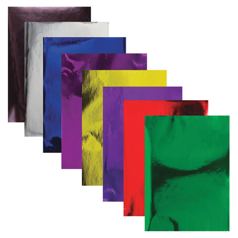 Зеркальный картон (металлизированная пленка на картонной основе) обладает плотностью 180 г/м2. Может использоваться, начиная с трехлетнего возраста. Картон легко режется ножницами, сгибается и клеится. Внутренний блок состоит из 8 листов формата А4 (200х297 мм) и 8 цветов.