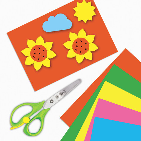 Мелованный картон с улучшенной прокраской обладает плотностью 200 г/м2. Легко режется ножницами, сгибается и клеится. Внутренний блок состоит из 8 листов формата А4 (200х290 мм) и 8 флуоресцентных цветов.