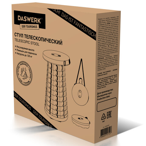 Туристический складной стул DASWERK идеально подходит для пеших прогулок на природе, кемпинга, охоты, путешествий, рыбалки, пикника, барбекю и других видов активного отдыха.
